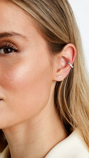 Whether you are at work, out shopping, or on a date, the right pair of CARAT* LONDON earrings for women will make all the difference. This jewellery essential has the power to dress up anything and to express your style and individuality. Something simple, like mini hoop earrings can be quite the statement piece. Or maybe you fancy something more accentuated, like CARAT* drop earrings. Select your favourite earrings from our impossibly pretty collections of handcrafted Yellow Gold, White Gold, Rose Gold and Silver Sterling pieces. You can't go wrong by picking from our most popular ear pieces: The gorgeous Suriya Ear Jackets, the Eternal Four Prong Studs in classic White Gold to add some extra sparkle, or the Nysa Drops featuring our intricately cut round brilliant and micro-set stone. Pair your CARAT* LONDON earrings with matching pieces from the same collection to complete your look. If you are looking for a romantic yet fashionable gift, head to our stud earring section. So pretty, delicate and simple you will never want to take them off. Add a personalised message when ordering via our website if you want to surprise someone!