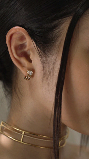 Whether you are at work, out shopping, or on a date, the right pair of CARAT* LONDON earrings for women will make all the difference. This jewellery essential has the power to dress up anything and to express your style and individuality. Something simple, like mini hoop earrings can be quite the statement piece. Or maybe you fancy something more accentuated, like CARAT* drop earrings. Select your favourite earrings from our impossibly pretty collections of handcrafted Yellow Gold, White Gold, Rose Gold and Silver Sterling pieces. You can't go wrong by picking from our most popular ear pieces: The gorgeous Suriya Ear Jackets, the Eternal Four Prong Studs in classic White Gold to add some extra sparkle, or the Nysa Drops featuring our intricately cut round brilliant and micro-set stone. Pair your CARAT* LONDON earrings with matching pieces from the same collection to complete your look. If you are looking for a romantic yet fashionable gift, head to our stud earring section. So pretty, delicate and simple you will never want to take them off. Add a personalised message when ordering via our website if you want to surprise someone!