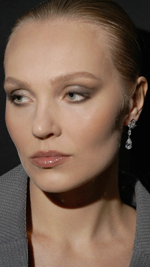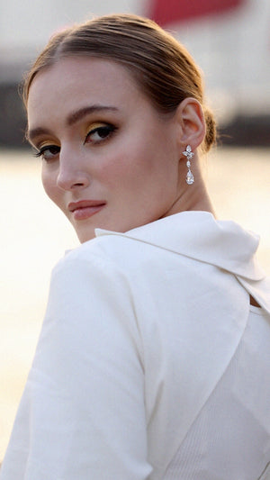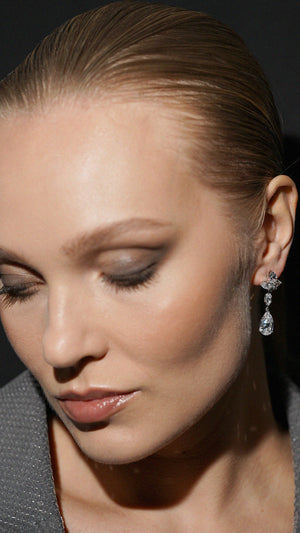 These stunning drops hang from a cluster of pear cuts in the lobe with our beautiful drop for a touch of elegance. Crafted in sterling silver with total drop of 3.9cm these are the perfect piece to add a touch of opulent sparkle to your bridal or evening look.
