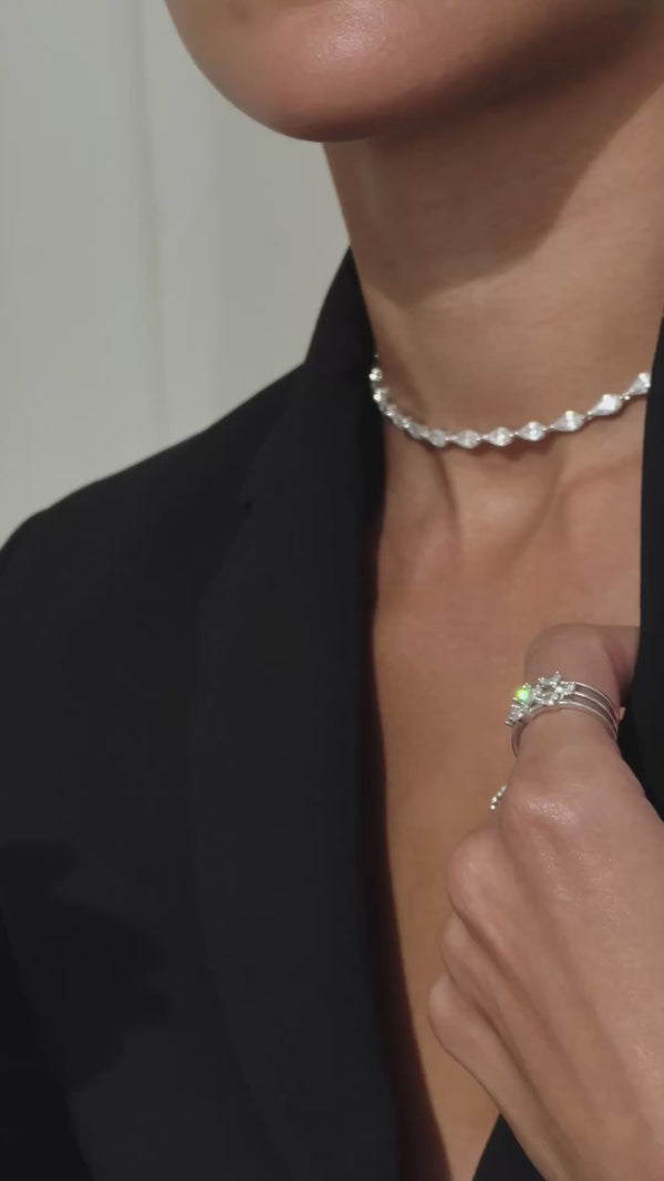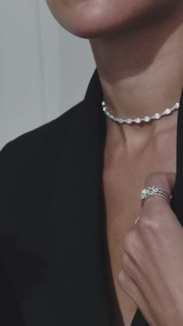 An exploration into contemporary silhouettes. Reinterpreting the allure of statement pieces. Ear jackets reminiscent of chandeliers couple modernity with classic femininity.