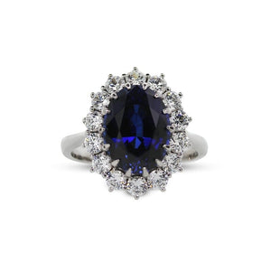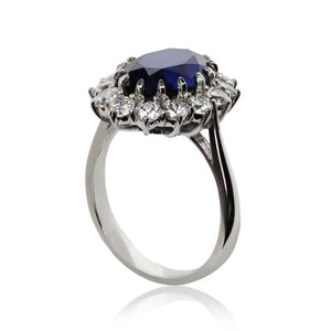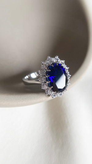 This dazzling ring is CARAT*'s equivalent to Princess Diana's engagement ring, now passed down to Kate Middleton upon her long-awaited engagement to Prince William. This remarkable Oval Sapphire and surrounding stones will undoubtedly call all eyes to attention.