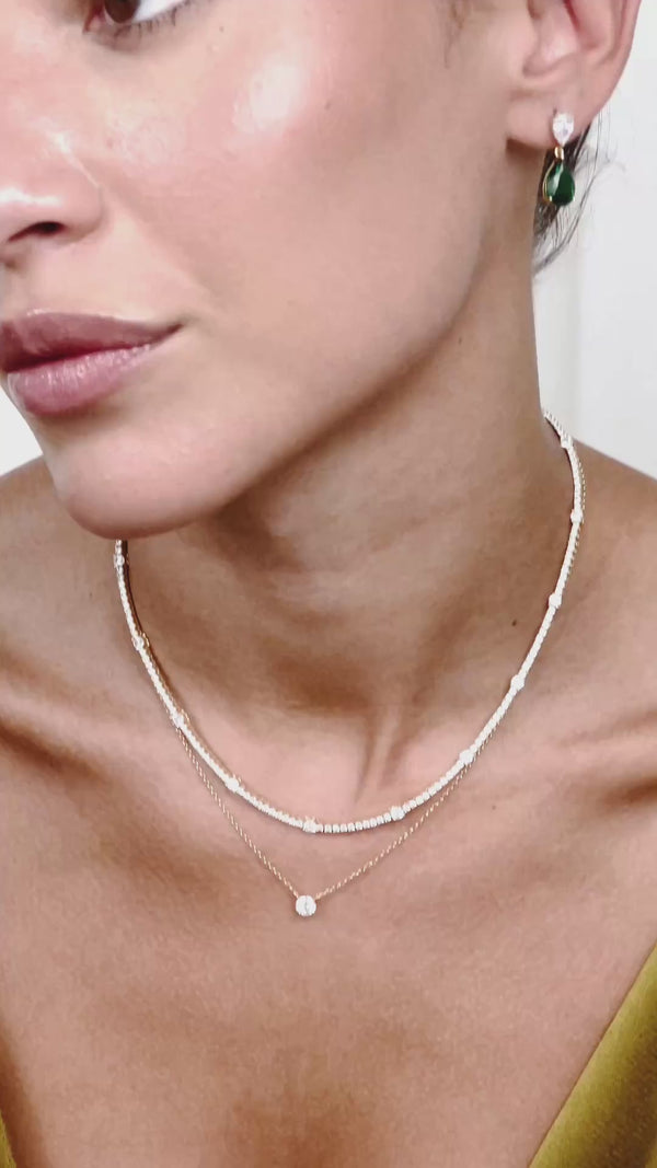 The Phoebe necklace is an effortlessly refined take on the classic tennis style, featuring beautifully cut, brilliant stones punctuated with larger round keystones.