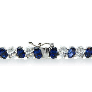 This well crafted necklace is created for those who want to put an elegant look into their evening wear. With created Sapphires, which have very similar optical characteristics to natural Sapphires, and CARAT*s beautiful diamond simulants all in oval brilliant cuts make this the perfect piece to add a touch of sparkle to your evening outfit.