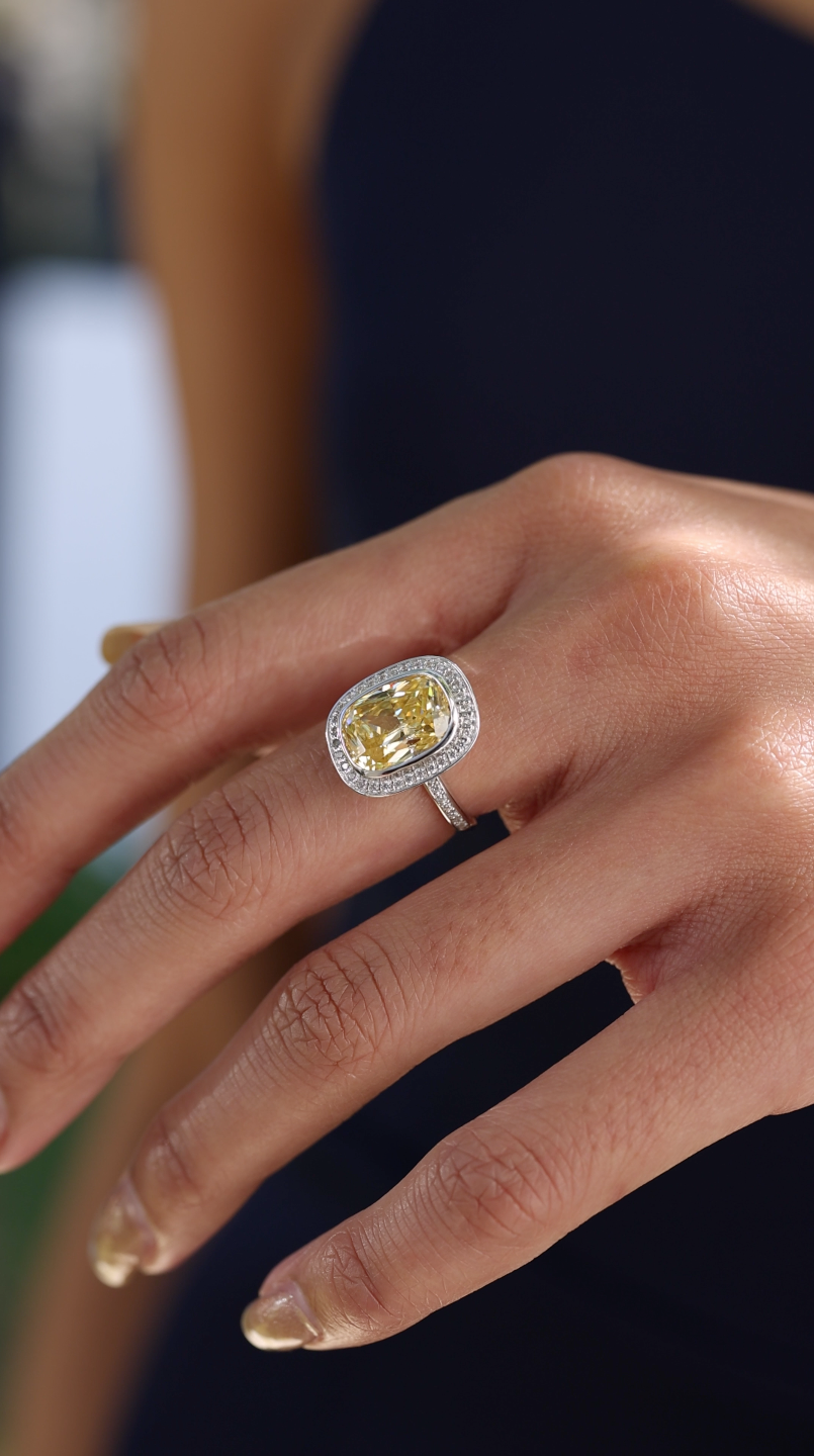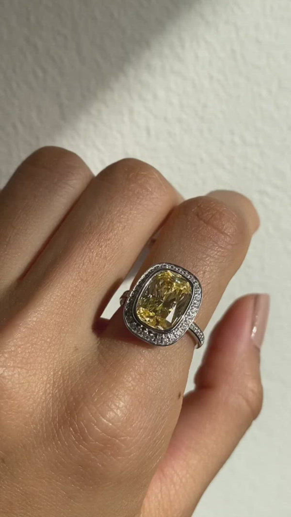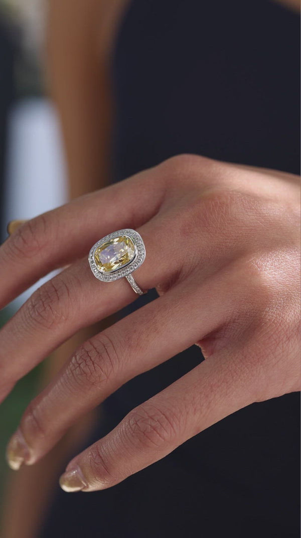 This beautiful cushion cut light yellow ring has a classic look that definitely stands out from the crowd.