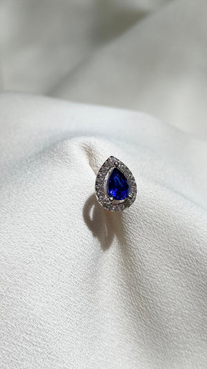 These studs feature an exquisite border setting in 1.25ct. eq. Sapphire blue Pear cut centre stone. Wear it as your everyday basic.