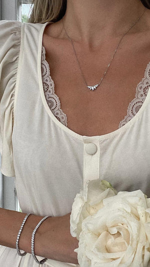 The Tulisa necklace is a classic piece that features a glittering cluster of marquise-cut stones. Complete with a slider closure, it can be worn at a length that suits you.