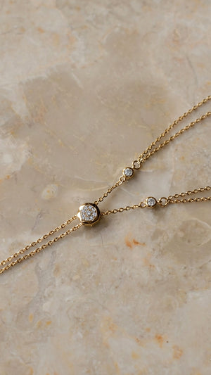 A stunning necklace comprised of a simple solitaire and a station necklace layer.