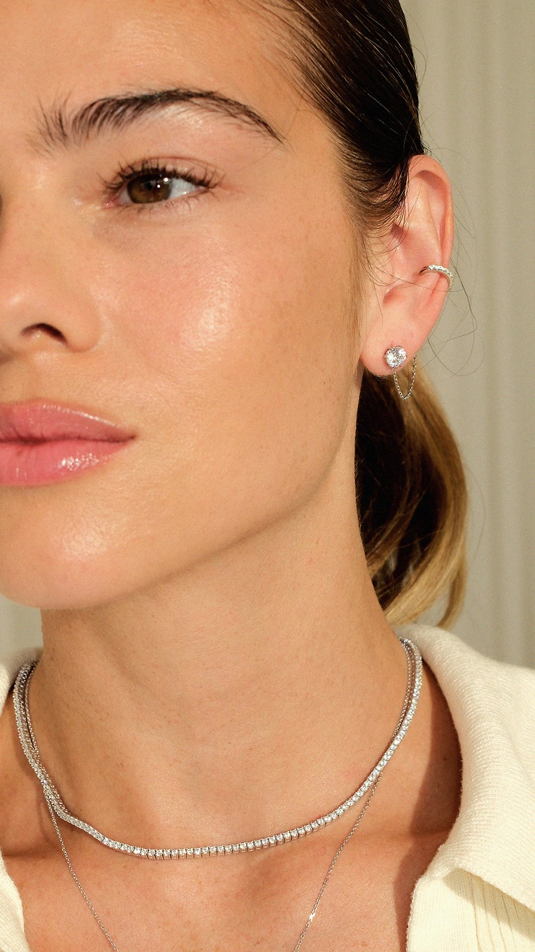 Serve up some serious style with this sleek, skinny tennis necklace. Designed to be your ultimate go-to piece, it brings a subtle yet stunning sparkle to any outfit.