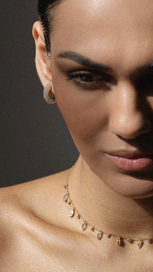 An exploration into contemporary silhouettes. Reinterpreting the allure of statement pieces. Ear jackets reminiscent of chandeliers couple modernity with classic femininity.