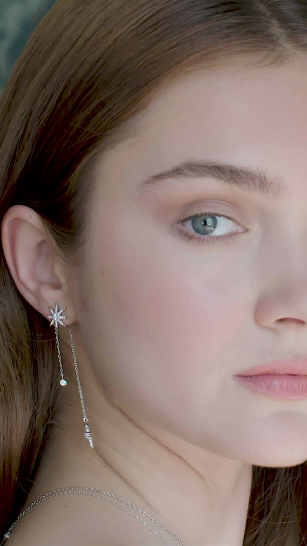 Our iconic Stella star motif highlights these captivating earrings with delicate chains finished with sparkling drops. Wear with your hair up to showcase its scintillating details.