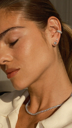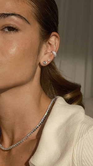 A sterling silver ear cuff with snow pavé detailing, the Hera ear cuff fits snugly and adds a little edge to any ear stack. Elegant and easy to stack with other ear cuffs, studs and hoops to build your own look.