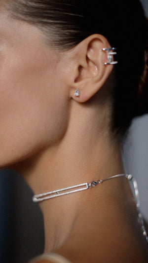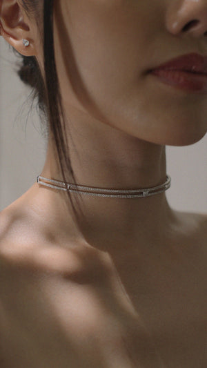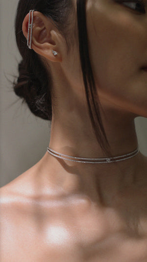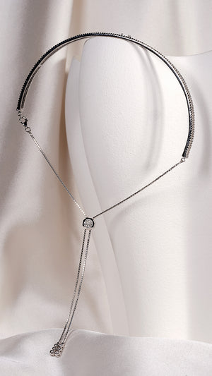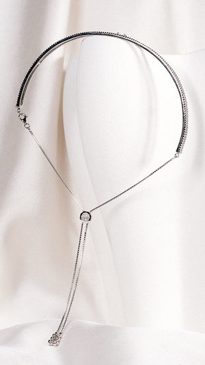 The Thela is designed to make an impression. An adjustable tension toggle holds this stunning necklace in place, creating a modern bridal look or an evening out look.