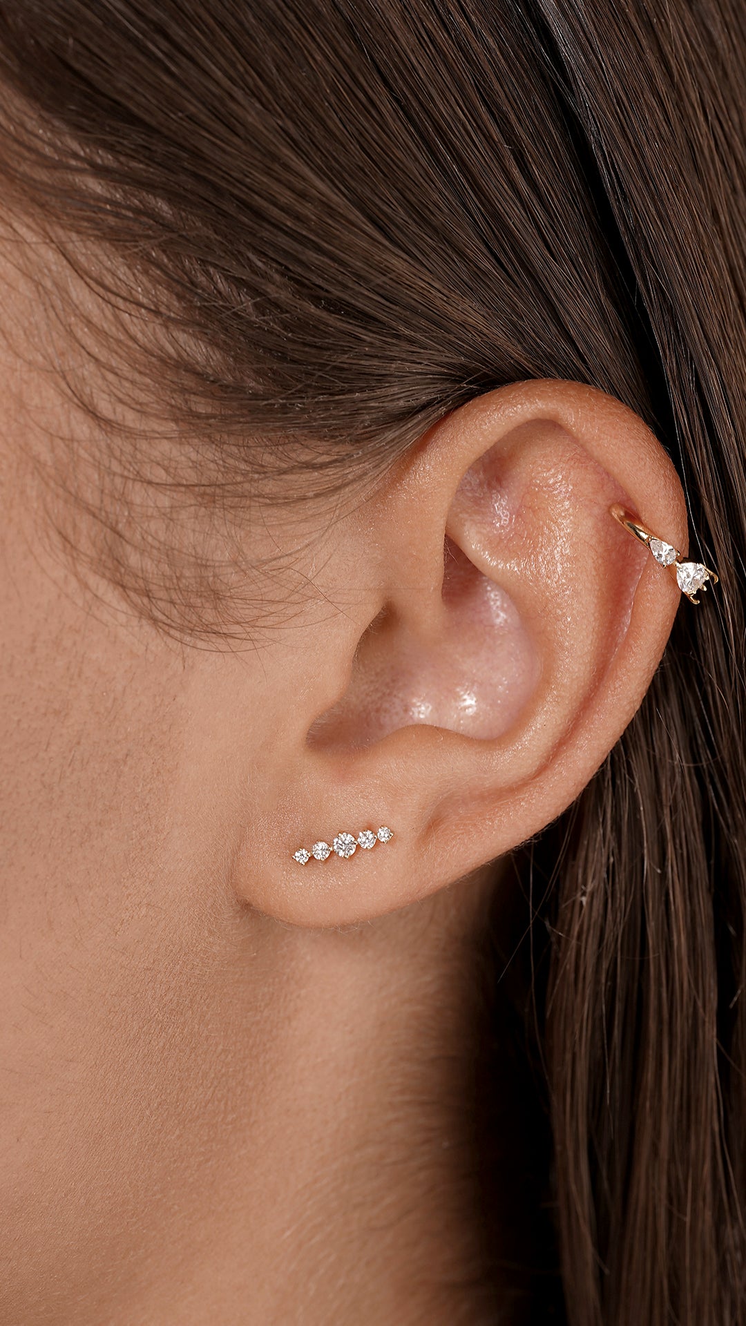 Wear it like a mini ear crawler on a second or third piercing, or let it dangle and pair it with other tiny earrings.