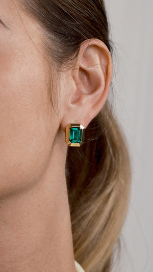 Bring the drama to brunch with the Lily Earrings. Featuring a chunky 18K gold vermeil bezel, and envy inducing emeralds, Lily is designed for heavy-duty durability and high-voltage drama.