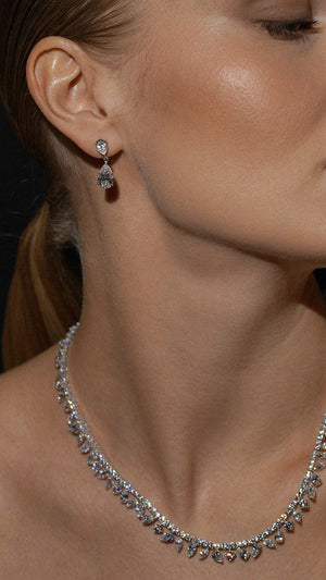 This delicate drop earring comprises two pear cuts, respectively 0.75ct and 2.5ct. Equivalent with a total drop of around 2 cm.