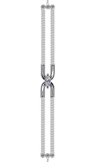 This bracelet features chain detailing with a twist! With a sparkling marquise-cut centre stone, she's crafted in sterling silver with white gold plating and finished with a fully adjustable signature CARAT* slider closure.