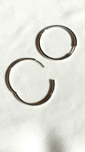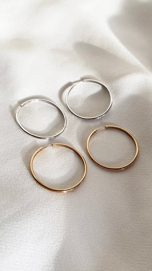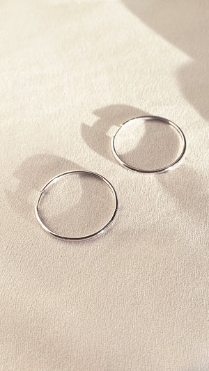 A beautiful pair of essential hoops in polished 9K white gold. Featuring a hidden invisible lock mechanism for a seamless look when worn. A staple pair for every jewellery collection. Style these hoops with your everyday wardrobe. For a smaller hoop size, try the Senna hoops.