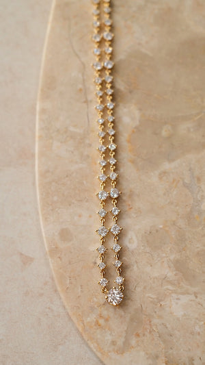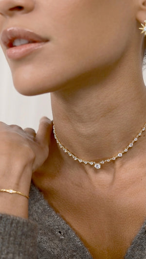 Varying-sized brilliant-cut rounds dance along a handmade, fully articulated chain.