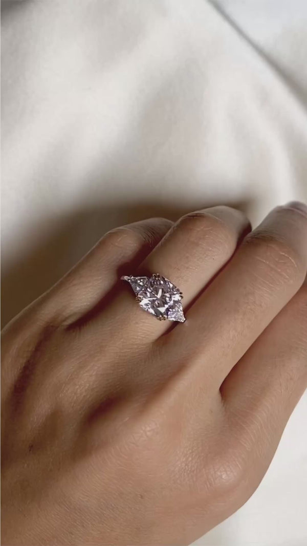 This stunning ring is one of our go-to staff favourites. A baby cocktail ring showcasing a classic trilogy design, the Flanders cut is a modified round brilliant with an impressive 61 facets.