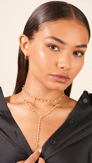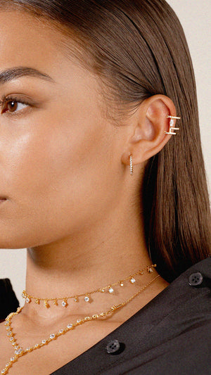 Add some simple earrings to your look, seen here with our Carissa Climber earrings, to complete your look.
