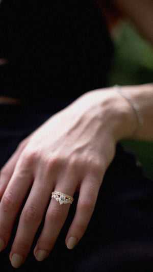This ring features our intricately cut and polished Pear and Marquise stones set on top of a micro-set band and crafted in Sterling Silver. The design creates the appearance of a crown, offering the perfect mix of modern and vintage allure.